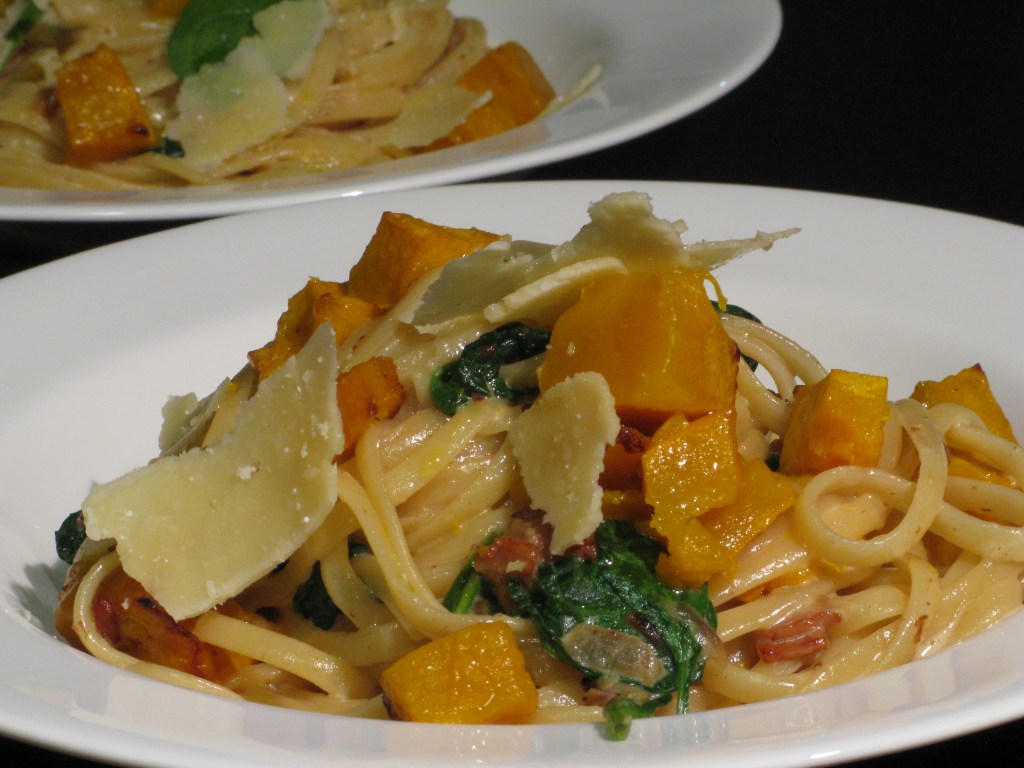 Pasta with roasted pumpkin and bacon