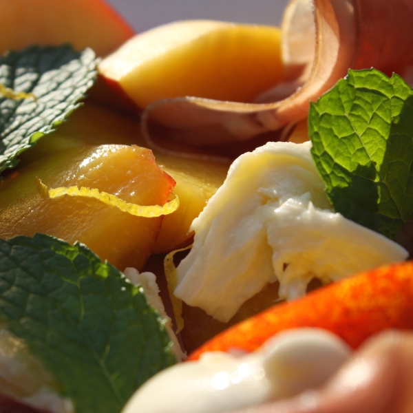 Arrange the nectarines, mozzarella and prosciutto on a serving platter and then scatter over the mint and lemon zest. Serve straight away with fresh bread, grilled meat or chicken, or just enjoy before dinner with a glass of sauvignon blanc, good friends and music. (I recommend The Idea of North Christmas album for this time of year)